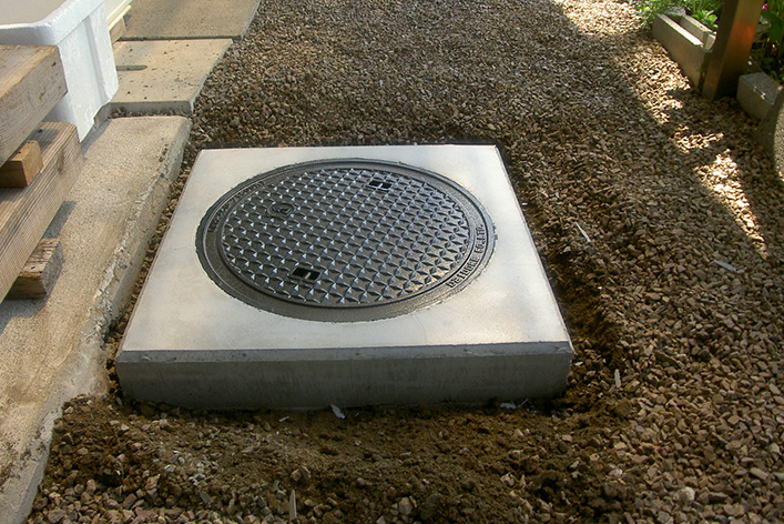 地中に基礎工事を行い、おもにFRP製の浄化槽を埋設設置、配管を行います、また設置する高さによっては放流用ポンプを設置工事も行っております。